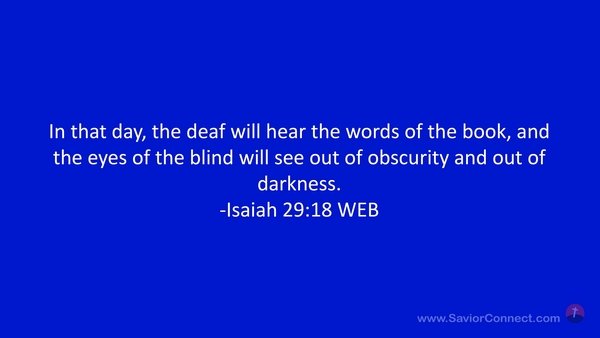 In that day, the deaf will hear the words of the book, and the eyes of the blind will see out of obscurity and out of darkness. -Isaiah 29:18 WEB