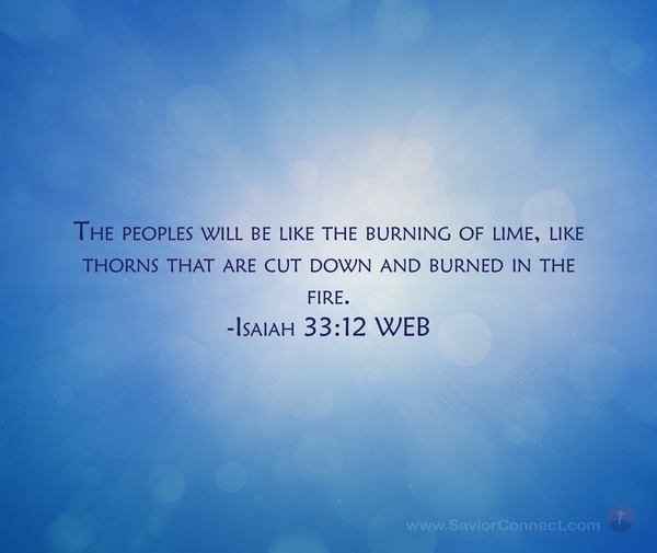 The peoples will be like the burning of lime, like thorns that are cut down and burned in the fire. -Isaiah 33:12 WEB