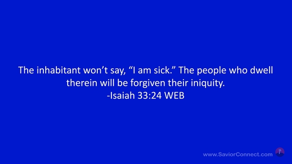 The inhabitant won’t say, “I am sick.” The people who dwell therein will be forgiven their iniquity. -Isaiah 33:24 WEB