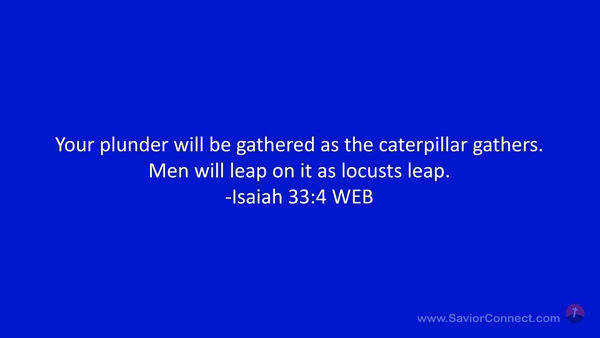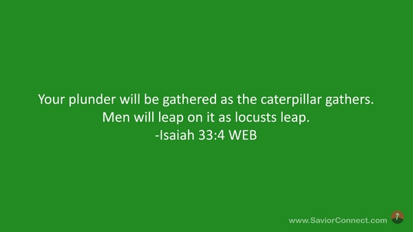 Your plunder will be gathered as the caterpillar gathers. Men will leap on it as locusts leap. -Isaiah 33:4 WEB