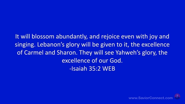 It will blossom abundantly, and rejoice even with joy and singing. Lebanon’s glory will be given to it, the excellence of Carmel and Sharon. They will see Yahweh’s glory, the excellence of our God. -Isaiah 35:2 WEB