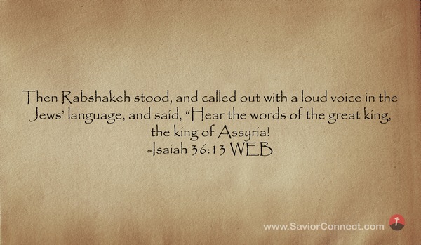 Then Rabshakeh stood, and called out with a loud voice in the Jews’ language, and said, “Hear the words of the great king, the king of Assyria! -Isaiah 36:13 WEB