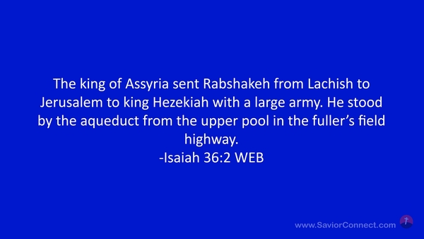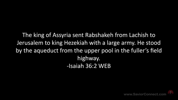 The king of Assyria sent Rabshakeh from Lachish to Jerusalem to king Hezekiah with a large army. He stood by the aqueduct from the upper pool in the fuller’s field highway. -Isaiah 36:2 WEB