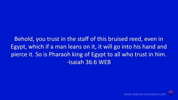 Behold, you trust in the staff of this bruised reed, even in Egypt, which if a man leans on it, it will go into his hand and pierce it. So is Pharaoh king of Egypt to all who trust in him. -Isaiah 36:6 WEB