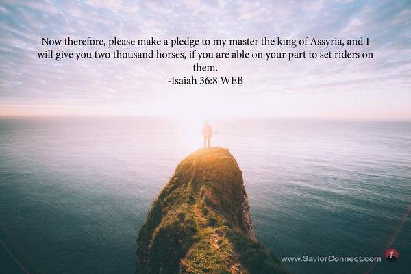 Now therefore, please make a pledge to my master the king of Assyria, and I will give you two thousand horses, if you are able on your part to set riders on them. -Isaiah 36:8 WEB