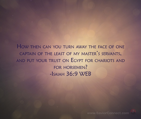 How then can you turn away the face of one captain of the least of my master’s servants, and put your trust on Egypt for chariots and for horsemen? -Isaiah 36:9 WEB