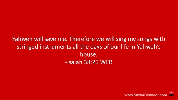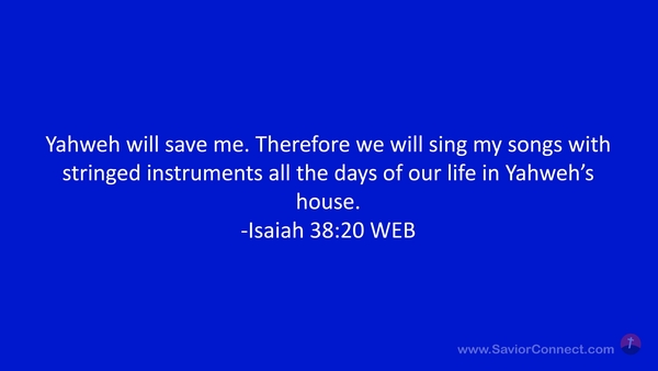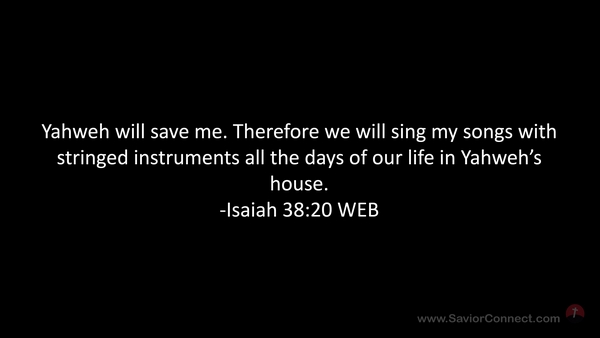 Yahweh will save me. Therefore we will sing my songs with stringed instruments all the days of our life in Yahweh’s house. -Isaiah 38:20 WEB