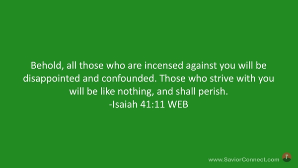 Behold, all those who are incensed against you will be disappointed and confounded. Those who strive with you will be like nothing, and shall perish. -Isaiah 41:11 WEB