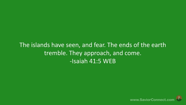 The islands have seen, and fear. The ends of the earth tremble. They approach, and come. -Isaiah 41:5 WEB