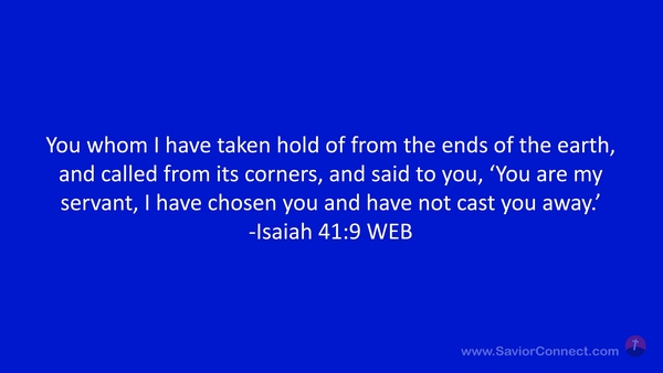You whom I have taken hold of from the ends of the earth, and called from its corners, and said to you, 'You are my servant, I have chosen you and have not cast you away.’ -Isaiah 41:9 WEB