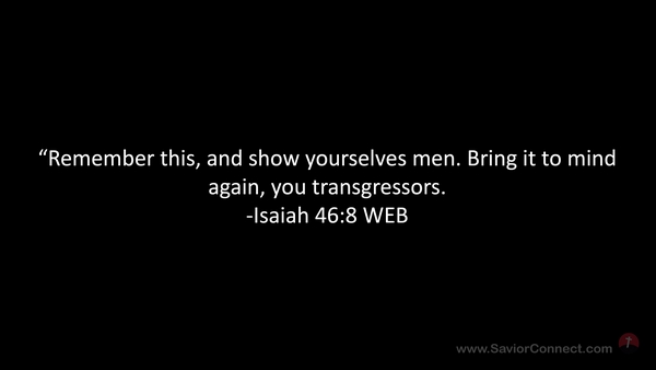 “Remember this, and show yourselves men. Bring it to mind again, you transgressors. -Isaiah 46:8 WEB