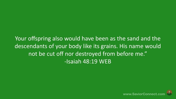 Your offspring also would have been as the sand and the descendants of your body like its grains. His name would not be cut off nor destroyed from before me.” -Isaiah 48:19 WEB