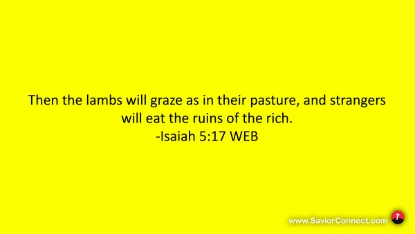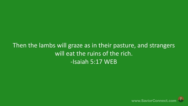 Then the lambs will graze as in their pasture, and strangers will eat the ruins of the rich. -Isaiah 5:17 WEB