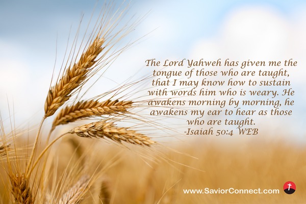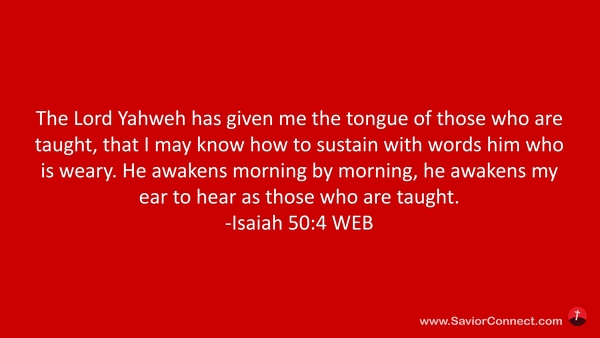 The Lord Yahweh has given me the tongue of those who are taught, that I may know how to sustain with words him who is weary. He awakens morning by morning, he awakens my ear to hear as those who are taught. -Isaiah 50:4 WEB