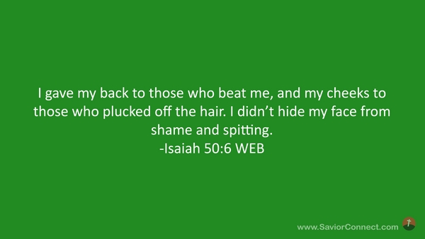I gave my back to those who beat me, and my cheeks to those who plucked off the hair. I didn’t hide my face from shame and spitting. -Isaiah 50:6 WEB