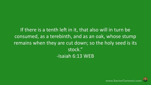 If there is a tenth left in it, that also will in turn be consumed, as a terebinth, and as an oak, whose stump remains when they are cut down; so the holy seed is its stock.” -Isaiah 6:13 WEB