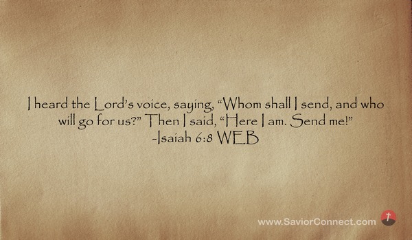 I heard the Lord’s voice, saying, “Whom shall I send, and who will go for us?” Then I said, “Here I am. Send me!” -Isaiah 6:8 WEB