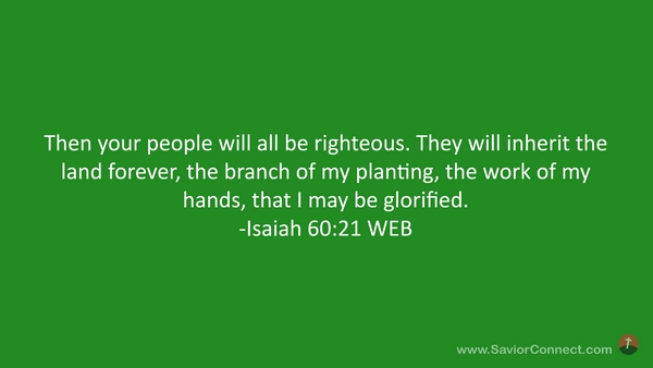 Then your people will all be righteous. They will inherit the land forever, the branch of my planting, the work of my hands, that I may be glorified. -Isaiah 60:21 WEB