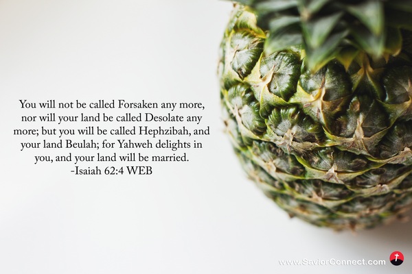 You will not be called Forsaken any more, nor will your land be called Desolate any more; but you will be called Hephzibah, and your land Beulah; for Yahweh delights in you, and your land will be married. -Isaiah 62:4 WEB