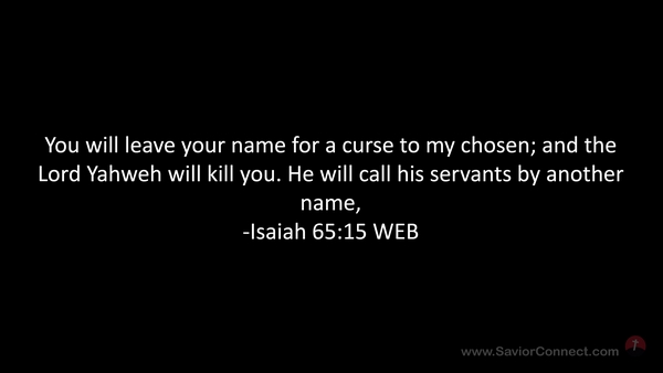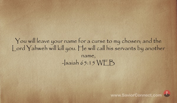 You will leave your name for a curse to my chosen; and the Lord Yahweh will kill you. He will call his servants by another name, -Isaiah 65:15 WEB