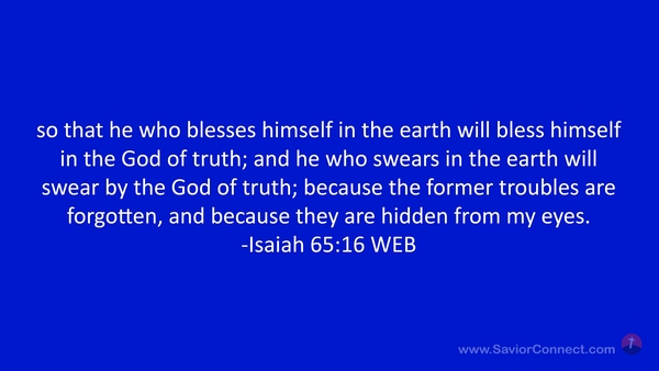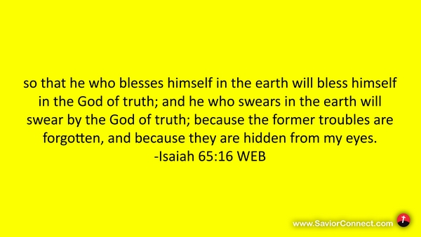 so that he who blesses himself in the earth will bless himself in the God of truth; and he who swears in the earth will swear by the God of truth; because the former troubles are forgotten, and because they are hidden from my eyes. -Isaiah 65:16 WEB