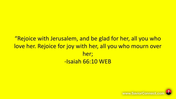 “Rejoice with Jerusalem, and be glad for her, all you who love her. Rejoice for joy with her, all you who mourn over her; -Isaiah 66:10 WEB