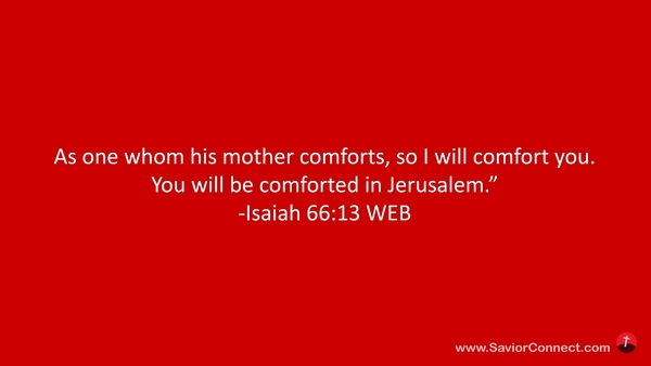 As one whom his mother comforts, so I will comfort you. You will be comforted in Jerusalem.” -Isaiah 66:13 WEB