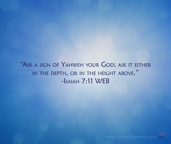 “Ask a sign of Yahweh your God; ask it either in the depth, or in the height above.” -Isaiah 7:11 WEB