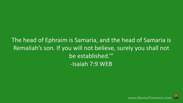 The head of Ephraim is Samaria, and the head of Samaria is Remaliah’s son. If you will not believe, surely you shall not be established.’” -Isaiah 7:9 WEB