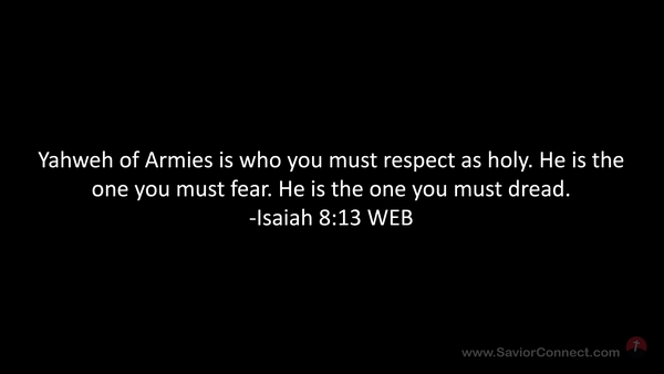 Yahweh of Armies is who you must respect as holy. He is the one you must fear. He is the one you must dread. -Isaiah 8:13 WEB