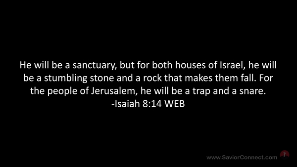 He will be a sanctuary, but for both houses of Israel, he will be a stumbling stone and a rock that makes them fall. For the people of Jerusalem, he will be a trap and a snare. -Isaiah 8:14 WEB