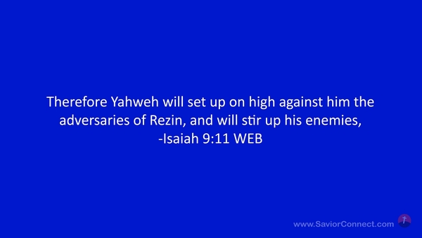 Therefore Yahweh will set up on high against him the adversaries of Rezin, and will stir up his enemies, -Isaiah 9:11 WEB