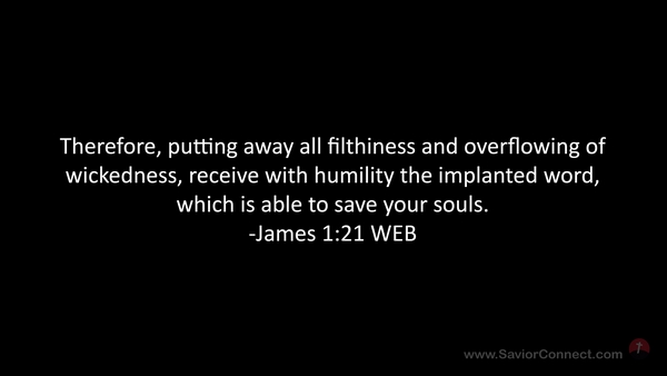 Therefore, putting away all filthiness and overflowing of wickedness, receive with humility the implanted word, which is able to save your souls. -James 1:21 WEB
