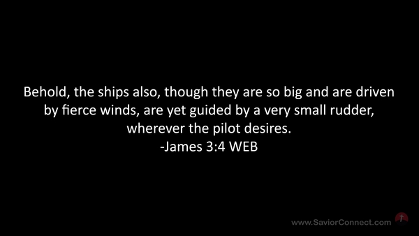 Behold, the ships also, though they are so big and are driven by fierce winds, are yet guided by a very small rudder, wherever the pilot desires. -James 3:4 WEB