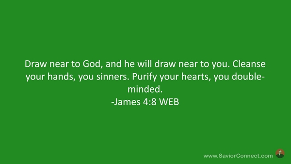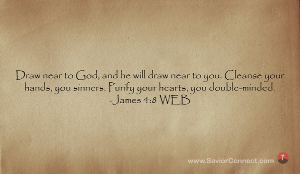Draw near to God, and he will draw near to you. Cleanse your hands, you sinners. Purify your hearts, you double-minded. -James 4:8 WEB