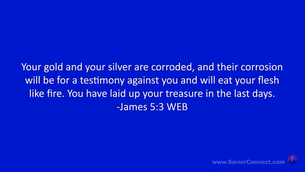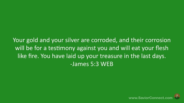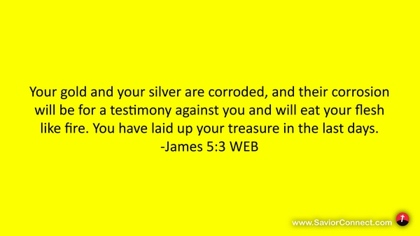 Your gold and your silver are corroded, and their corrosion will be for a testimony against you and will eat your flesh like fire. You have laid up your treasure in the last days. -James 5:3 WEB