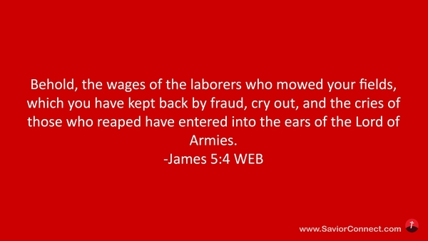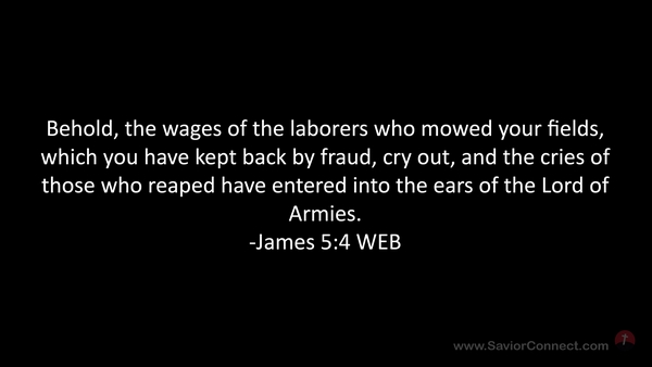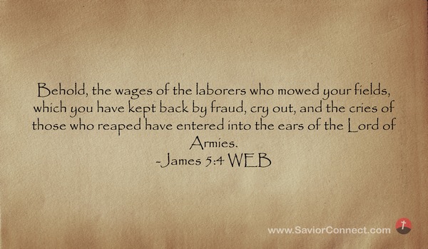 Behold, the wages of the laborers who mowed your fields, which you have kept back by fraud, cry out, and the cries of those who reaped have entered into the ears of the Lord of Armies. -James 5:4 WEB