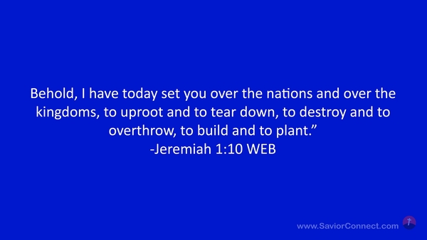 Behold, I have today set you over the nations and over the kingdoms, to uproot and to tear down, to destroy and to overthrow, to build and to plant.” -Jeremiah 1:10 WEB