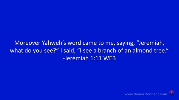 Moreover Yahweh’s word came to me, saying, “Jeremiah, what do you see?” I said, “I see a branch of an almond tree.” -Jeremiah 1:11 WEB