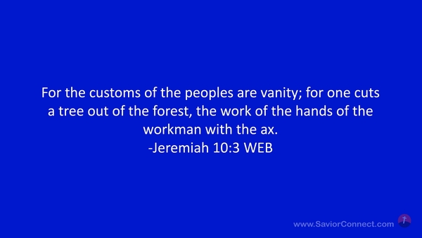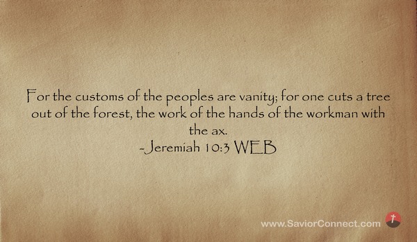 For the customs of the peoples are vanity; for one cuts a tree out of the forest, the work of the hands of the workman with the ax. -Jeremiah 10:3 WEB