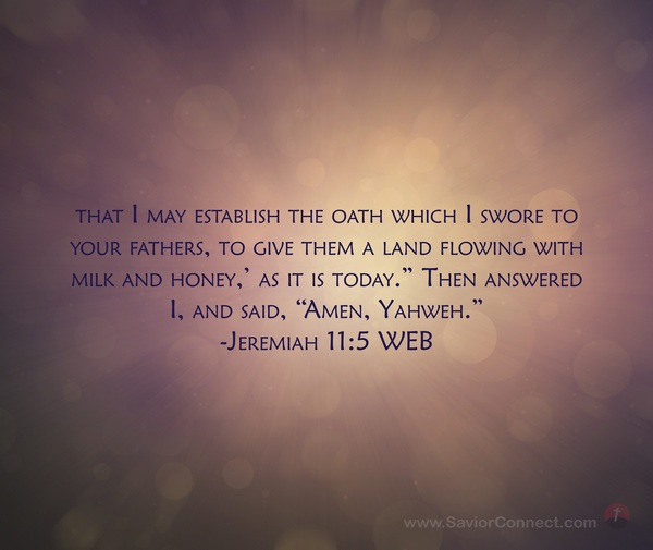 that I may establish the oath which I swore to your fathers, to give them a land flowing with milk and honey,’ as it is today.” Then answered I, and said, “Amen, Yahweh.” -Jeremiah 11:5 WEB