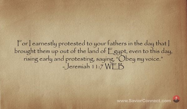 For I earnestly protested to your fathers in the day that I brought them up out of the land of Egypt, even to this day, rising early and protesting, saying, “Obey my voice.” -Jeremiah 11:7 WEB