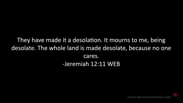 They have made it a desolation. It mourns to me, being desolate. The whole land is made desolate, because no one cares. -Jeremiah 12:11 WEB