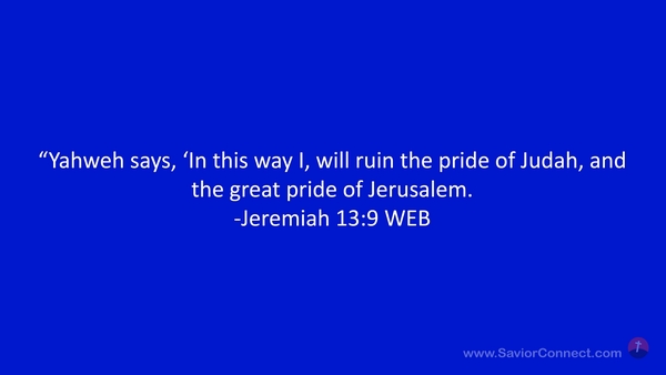 “Yahweh says, 'In this way I, will ruin the pride of Judah, and the great pride of Jerusalem. -Jeremiah 13:9 WEB