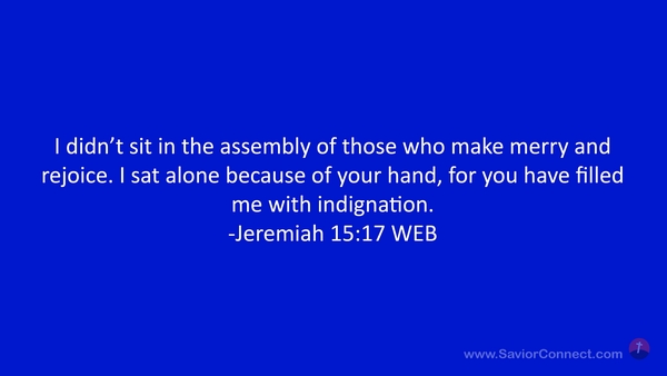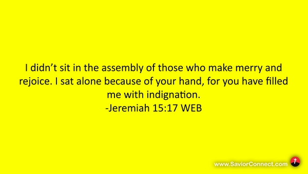 I didn’t sit in the assembly of those who make merry and rejoice. I sat alone because of your hand, for you have filled me with indignation. -Jeremiah 15:17 WEB