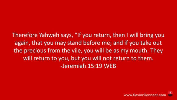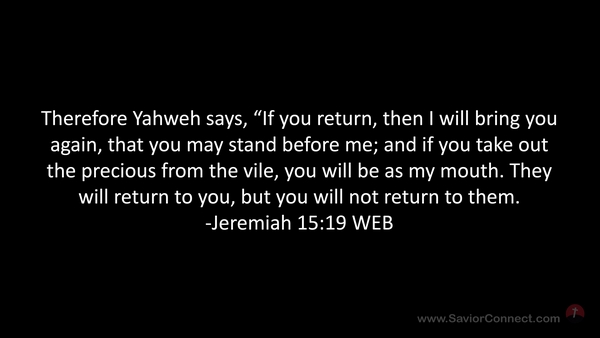 Therefore Yahweh says, “If you return, then I will bring you again, that you may stand before me; and if you take out the precious from the vile, you will be as my mouth. They will return to you, but you will not return to them. -Jeremiah 15:19 WEB