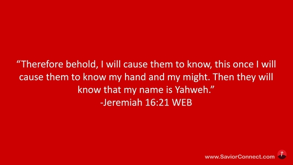 “Therefore behold, I will cause them to know, this once I will cause them to know my hand and my might. Then they will know that my name is Yahweh.” -Jeremiah 16:21 WEB