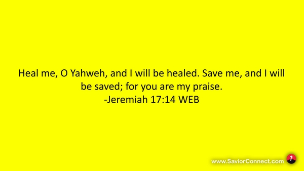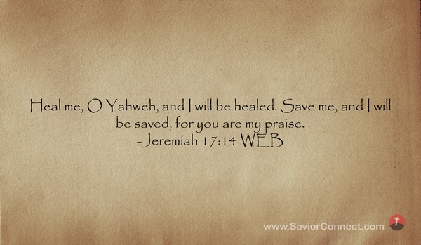 Heal me, O Yahweh, and I will be healed. Save me, and I will be saved; for you are my praise. -Jeremiah 17:14 WEB