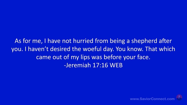 As for me, I have not hurried from being a shepherd after you. I haven’t desired the woeful day. You know. That which came out of my lips was before your face. -Jeremiah 17:16 WEB