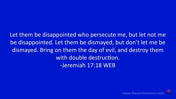 Let them be disappointed who persecute me, but let not me be disappointed. Let them be dismayed, but don’t let me be dismayed. Bring on them the day of evil, and destroy them with double destruction. -Jeremiah 17:18 WEB